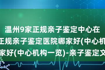 想要在毕节进行亲子鉴定?您可以选择前往毕节的国权亲子鉴定咨询中心。为了帮助大家更便捷地寻找合适的鉴定机构,我们特此汇编了一份包含10家正规鉴定中心的名单,这些机构按顺序排列不分先后。以下是推荐的几家机构: